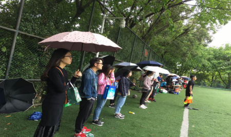 (公司研会成员雨中为球员加油)