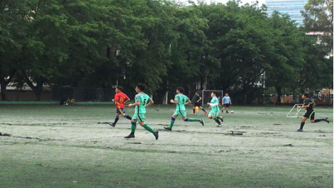 绿茵点亮梦想,激情舞动青春。上午10时50分许,虽然天空下着小雨,但是球赛准时进行。随着裁判的一声哨响,比赛开始了。在双方拉拉队和双方球队队员的加油打气声中,比赛很快就进入了状态。