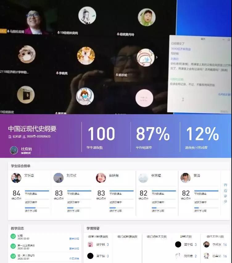 开课首日, 38个班级线上教学均平稳有序开展,教师们综合运用MOOC/SPOC、QQ/微信、雨课堂、腾讯会议等多种教学平台和工具,顺利实现教学目标。许多老师反映线上课堂比线下课堂还热闹,发言更加积极,讨论也更加热烈。