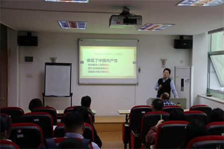 吴昱老师以《如何认识党的十九大报告》为题,阐释了中国共产党始终服务于人民的初心、勇于应对挑战的信心和实现伟大复兴的决心,体现了中国共产党自我革新的勇气、推进改革的底气和勇于开创的志气。张志刚老师以《“一带一路”的重要意义与当代中国的隐忧》为题,讲述了我国“一带一路”倡议的内容,并与我国社会发展的问题相对接,将中国的发展与世界的发展联系在一起。彭文平老师以党建为主题,介绍了发展党员的流程及在此过程中需要注意的问题。王瑶老师联系自己工作的实际着重强调了发展党员的标准。