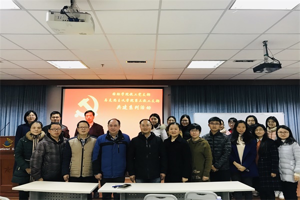 2019年1月3日下午16:30,谈球吧第三教工党支部与国际公司教工党支部首次共建活动在第二文科楼316会议室举行。本次活动的初衷是通过共建,探索党建工作新思路,携手打造精品党建品牌项目。国际公司党委书记邓永忠、副书记刘明、公司党总支柏元海书记等领导以及两支部党员参加了交流活动。