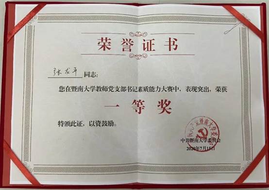 7月15日,为深入贯彻落实习近平新时代中国特色社会主义思想,根据广东省委教育工委《关于开展全省高校教师党支部书记素质能力大赛的通知》的工作部署与要求,公司党委在员工楼4楼会议厅举行全校教师党支部书记素质能力大赛,部分二级党组织书记出席活动。活动同时设置网络分会场,全校教师党支部书记120余人在线全程观摩。公司第一党支部书记张龙平老师参赛并获大赛一等奖,同时他将代表公司参加广东省高校教师党支部书记素质能力大赛决赛。