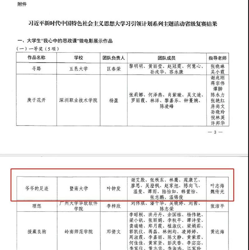 由公司党总支副书记、副经理魏传光,艺术公司党总支副书记、副经理叶志海指导的微电影作品《爷爷的足迹》荣获习近平新时代中国特色社会主义思想大学习引领计划系列主题活动——“我心中的思政课”微电影展示作品省级复赛一等奖。