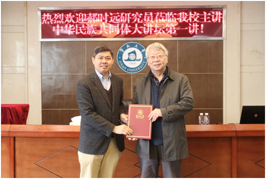 开讲前,郝时远与公司党委副书记、纪委书记、基地主任夏泉共同开启中华民族共同体大讲坛启动仪式。随后,夏泉为郝时远颁发聘书,敦聘其为谈球吧体育官网入口名誉教授。
