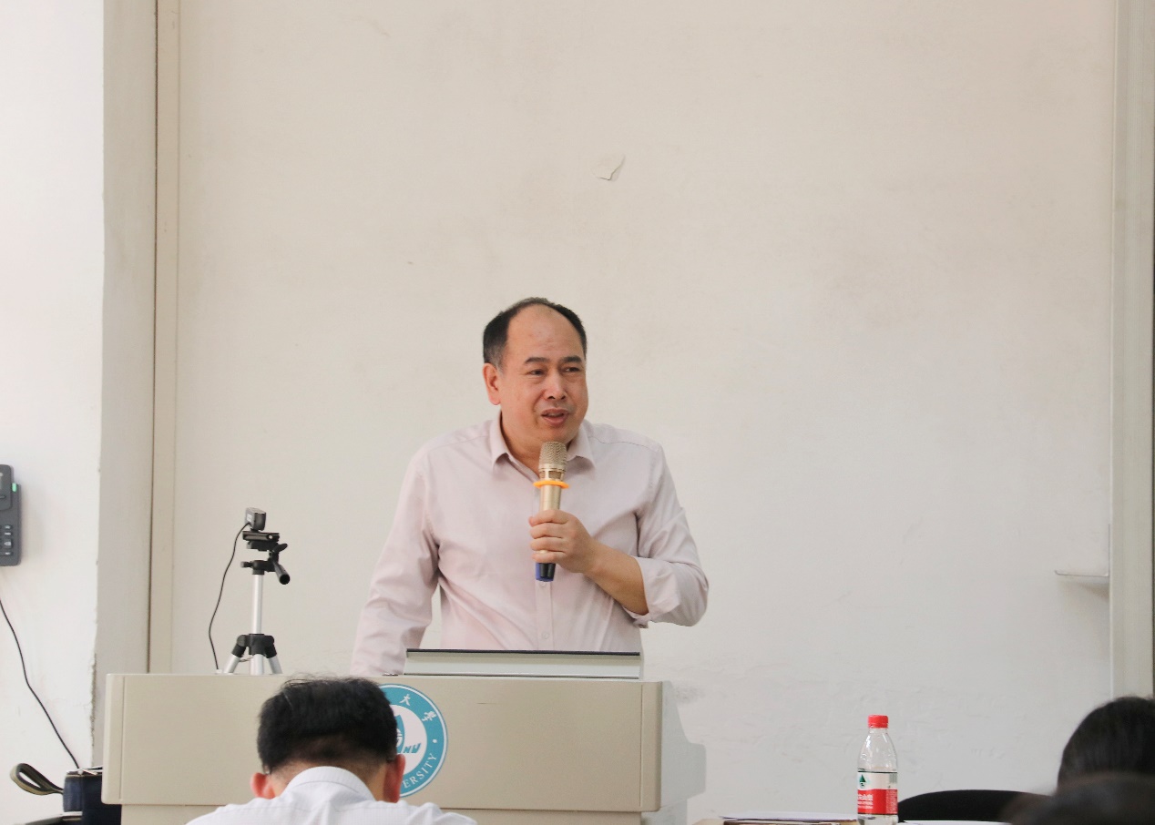 随后,副经理陈联俊同志结合党史教育学习任务,着力于铸牢中华民族共同体意识研究基地智库建设,号召全院师生努力将党史学习教育成果转化为研究动力,为党和国家奉献自身的智慧与力量。副经理张龙平同志就基地建设、外招生教学、广州党史宣讲这三方面发表讲话。