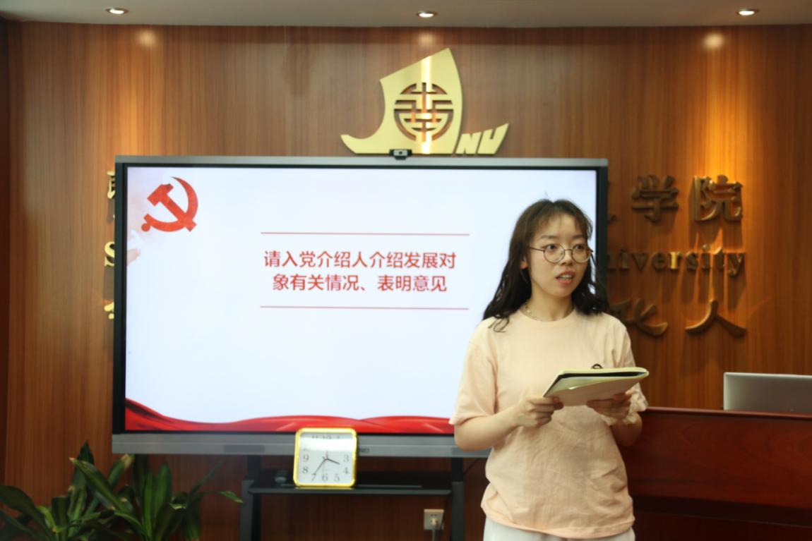 会上,发展对象从入党动机、本人履历、家庭和主要社会关系情况等方面汇报了个人情况。入党介绍人和支部委员会对发展对象的审查情况进行了介绍,并对其能否入党表明意见。随后,与会党员经充分讨论,采取无记名投票方式进行逐一表决,一致同意接收戴丽华等10名发展对象为中共预备党员。党支部书记陈濛宣读支部大会的决议后,申请入党人分别对支部大会讨论的情况表明自己的态度,他们谈到今后要在思想和行动上继续不断向党组织靠拢,向优秀的党员学习,努力提升自身综合素质。