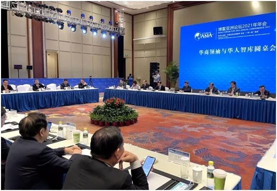 4月19日上午,博鳌亚洲论坛2021年年会•华商领袖与华人智库圆桌会议在海南博鳌召开。中央统战部副部长、国务院侨务办公室主任潘岳出席会议。