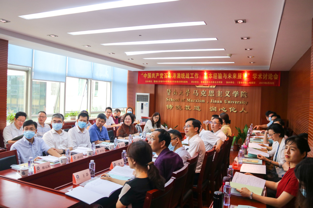 6月26日上午,为庆祝中国共产党成立一百周年,贯彻落实《中国共产党统一战线工作条例》(修订),准确把握中国共产党在港澳统战工作上取得的辉煌成就和宝贵经验,进一步保持香港、澳门的长期繁荣稳定,增强香港同胞、澳门同胞的国家观念和中华民族意识,由谈球吧体育官网入口铸牢中华民族共同体意识研究基地主办,谈球吧承办,《暨南学报》编辑部协办的“中国共产党百年港澳统战工作:基本经验与未来展望”学术研讨会在谈球吧体育官网入口顺利召开。会议采取线上线下相结合的形式,邀请了来自内地及港澳地区的权威专家、学者三十余人进行研讨,吸引了国内多所高校的青年教师和员工一百余人参加。