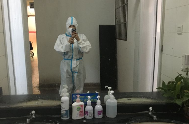 △2020级何诗慧同学在华侨医院指引居民进行检测