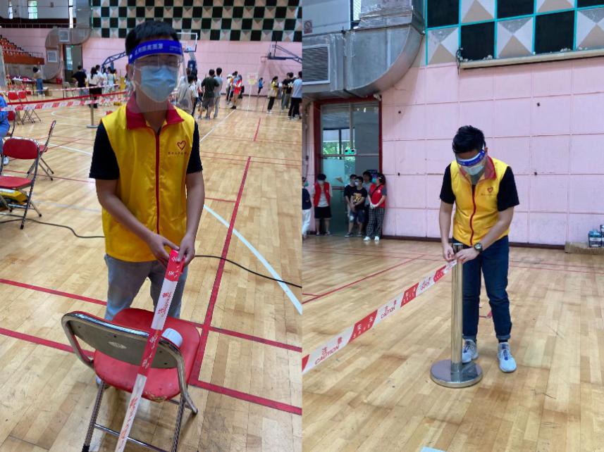 2019级张志鹏、温锦俊在体育馆参与秩序维护志愿工作