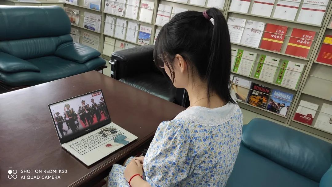 (图 | 2020级杨舒婷在图书馆观看直播)