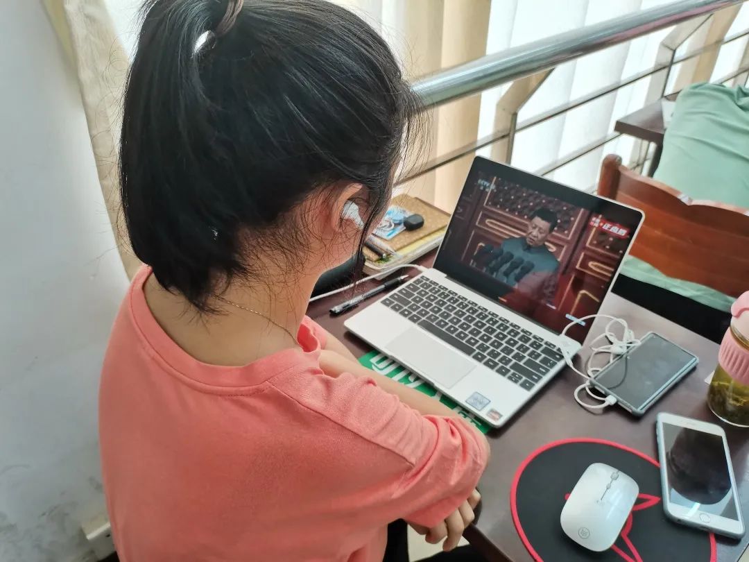 (图 | 2020级杨舒婷在图书馆观看直播)