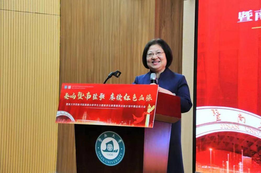 10件感人至深的党史故事,10首激扬斗志的暨南凯歌,深深触动了在场的评委与观众。程京武对比赛选手的优秀表现给予高度评价。她表示,同学们的演讲深刻诠释了“忠信笃敬,知行合一,自强不息,和而不同”的暨南精神,展现了暨南人历经三落三起、五度播迁仍始终如一的爱国爱党爱校情怀。“要在交流、交往中交融成暨南共同体与中华民族共同体。”程京武强调,四海学子应以建党100周年与建校115周年为契机,紧扣时代脉搏,珍惜发展机会,在新时代新征程中赓续红色血脉、唱响暨南凯歌。