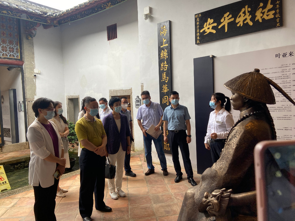 8月4日下午,调研组一行抵达惠阳区秋长街道,来到以红色文化、客家文化、侨乡文化而闻名的周田村,先后参观了叶挺将军纪念园、叶亚来故居、碧滟楼等,并与惠阳区委统战部、区文广新局、区侨联、区致公党相关负责人以及惠阳侨文化研究专家进行了交流座谈,听取惠阳华侨文化资源建设及品牌打造、华裔青少年交流等方面的情况。在听取惠阳介绍后,调研组对惠阳融合发展红色文化、客家文化、侨乡文化给予了高度评价。李迅说,惠阳区作为广东著名侨乡,在深挖红色文化、客家文化、侨乡文化方面有情怀、勇担当,在品牌打造、对外交流、涵养壮大知华友华力量等方面亮点多,成效好,希望惠阳继续活化利用叶亚来华侨文化资源,加大海外宣传交流,有效发挥惠阳港澳台侨“根·魂·梦”主题文化交流基地作用,不断增强华裔青年中华民族共同体意识,擦亮惠阳侨乡品牌。