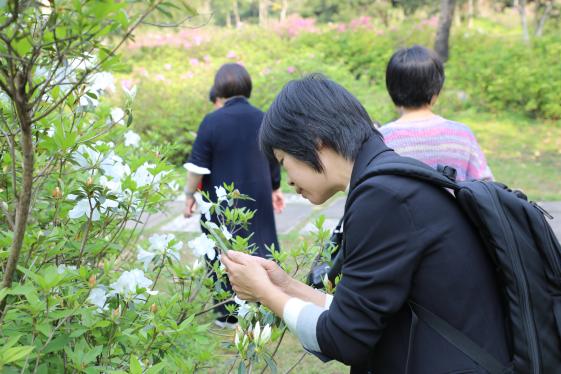 正值三月,植物园里草木葳蕤、百花盛开,教工们徜徉于花海之中,遇见陌生花卉便使用手机识别,学到许多热带、亚热带植物知识,在观赏花卉草木中感受岭南园林的独特文化,更深入地了解了广东省在推动构建中国特色、世界一流、万物和谐的国家植物园体系中所作的努力。