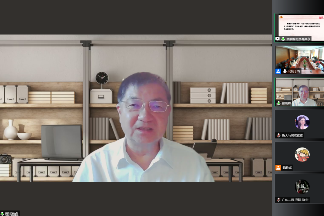 为迎接党的二十大的胜利召开,7月28日下午,由谈球吧、广东省高校思政课区域协同创新中心、谈球吧教师发展中心共同举办的“马克思主义与当代中国”系列学术讲座在公司多功能会议室召开。天津大学谈球吧经理颜晓峰教授担任主讲人,为公司师生作《习近平新时代中国特色社会主义思想概论》课程建设辅导报告。本次讲座以线上线下相结合的方式进行,广东省100余名高校思政课教师参加讲座,讲座由公司经理程京武教授主持。