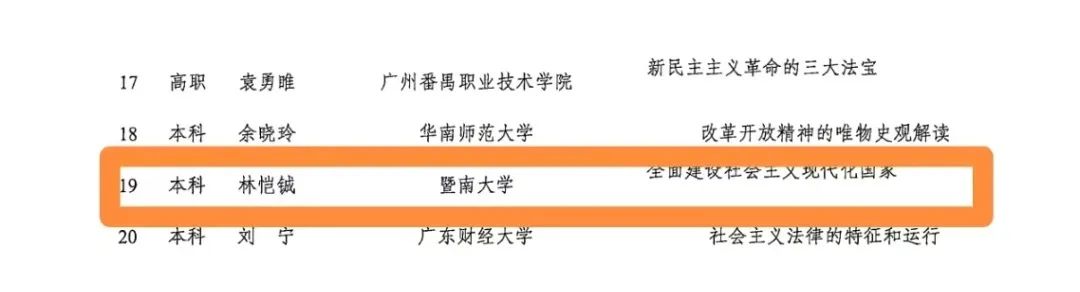 近日,由广东省教育厅主办的2023年度广东省大中小学思政课一体化教学展示交流活动结果公布,公司林恺铖老师讲授的专题“全面建设社会主义现代化国家”获得一等奖!