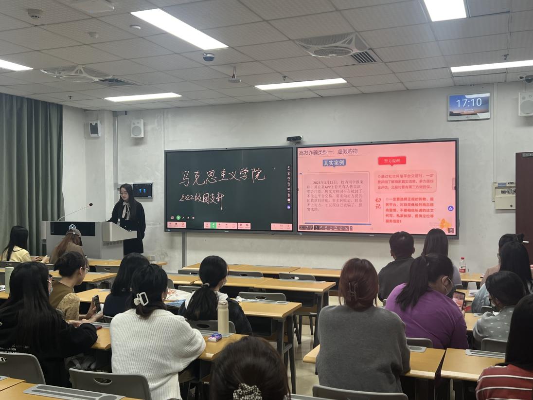 各年级团支部通过召开反诈禁毒主题班会,为同学们科普诈骗和毒品的危害性,以及如何识别和防范诈骗与毒品。通过播放相关主题视频、讲解校园高发诈骗类型及真实案例、开展反诈识毒小测试等形式,提高同学们对各类诈骗方式的鉴别能力,提升员工防范意识。
