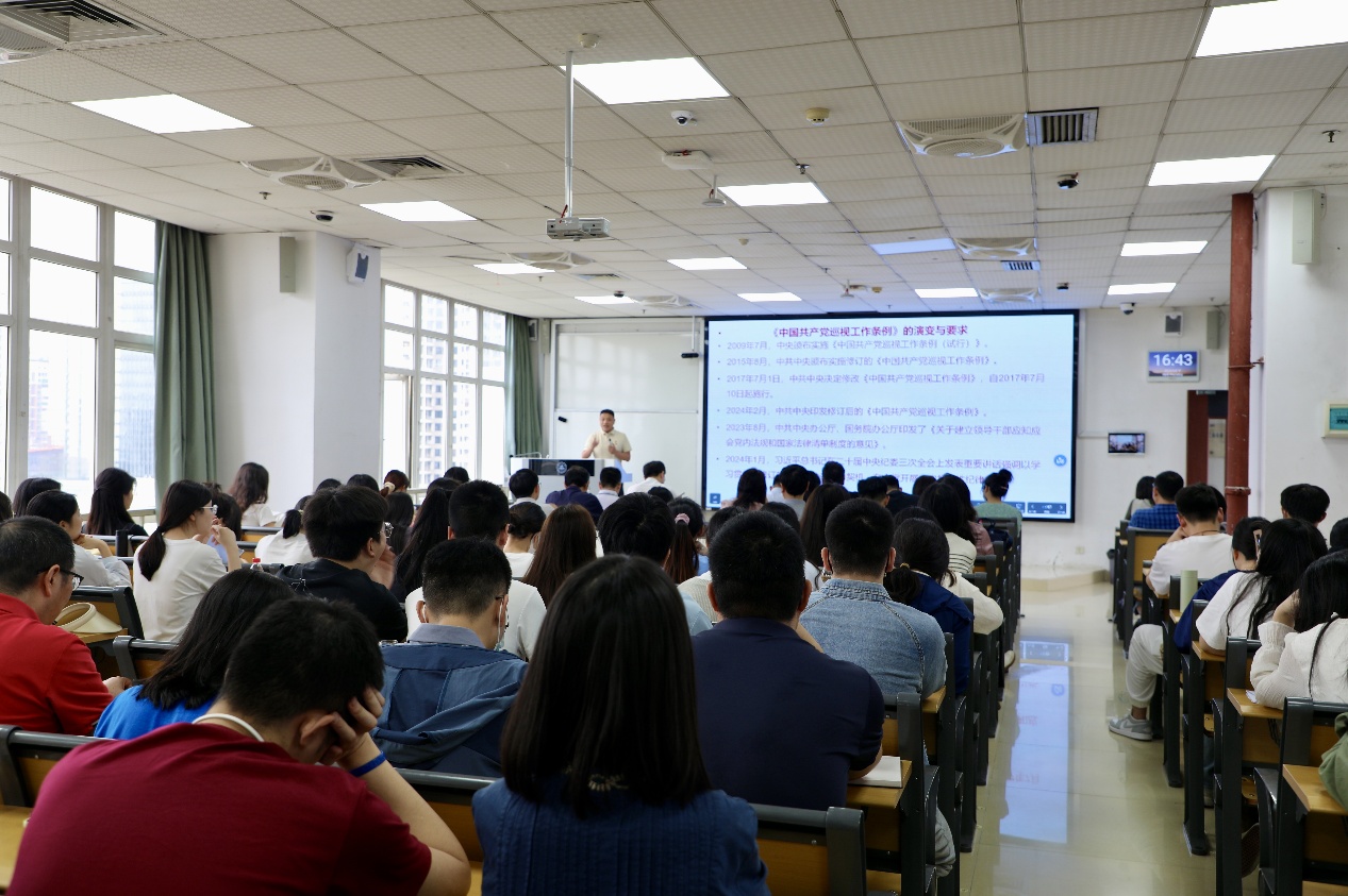 随后,公司教授王高贺同志作了题为“新修订《中国共产党巡视工作条例》解读”的专题讲座。王教授以《中国共产党巡视工作条例》的历史演变为切入点,围绕“修订背景、主要内容、修订意义”三个方面展开宣讲。他强调,修订后的《中国共产党巡视工作条例》首次从党内法规高度对政治巡视定位作出规定,对于推进巡视工作高质量发展具有重要意义。我们全体党员应该认真学习贯彻执行条例的新精神、新要求,严格遵规守纪,深刻领悟“两个确立”的决定性意义,以实际行动筑牢政治忠诚,将党规党纪内化于心、外化于行,把学习成果转化为自我革命、推动全院改革创新发展的强大动力。
