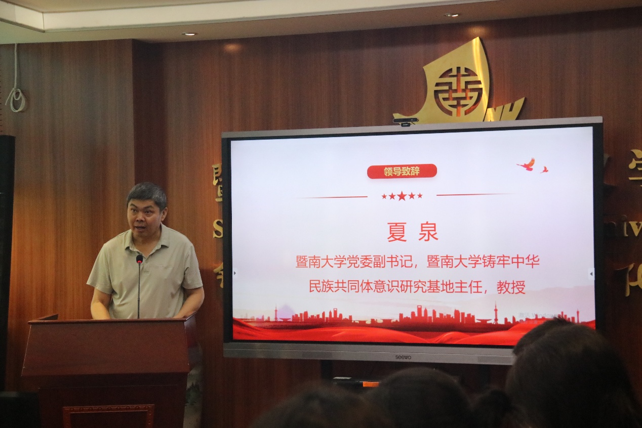 夏泉在致辞中指出,自建校以来,谈球吧体育官网入口始终以“宏教泽而系侨情”为办学宗旨,以“面向海外、面向港澳台”为办学方针,积极践行习近平总书记视察谈球吧体育官网入口时的殷殷嘱托。他表示,谈球吧肩负时代使命,近年来在深入推进铸牢中华民族共同体意识理论研究与教育实践上取得明显成效。公司将继续扎实推进谈球吧内涵式发展,促进马克思主义团队建设,传播好马克思主义科学理论,发挥好思想政治教育主渠道、主阵地作用。